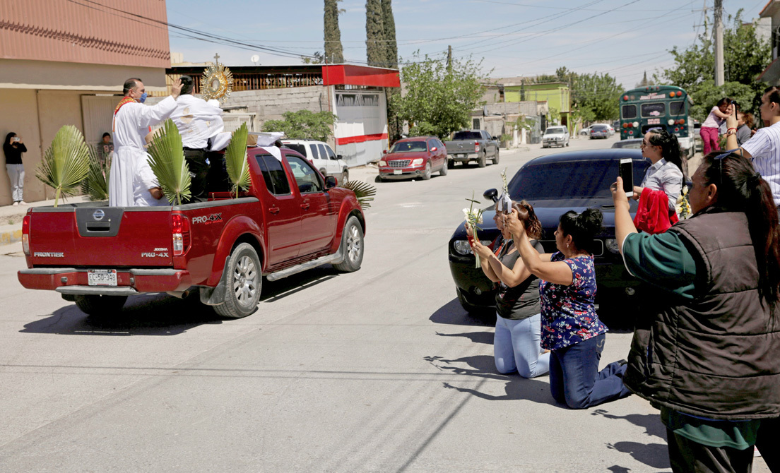 Una situación similar se vivió en México el pasado domingo 5 de abril, cuando el sacerdote Jorge Alfonso García Martínez recorrió las calles en Ciudad Juárez, con el Santísimo, a bordo de una camioneta, para bendecir a los feligreses, muchos de los cuales salieron de sus casas para tomar la bendición.