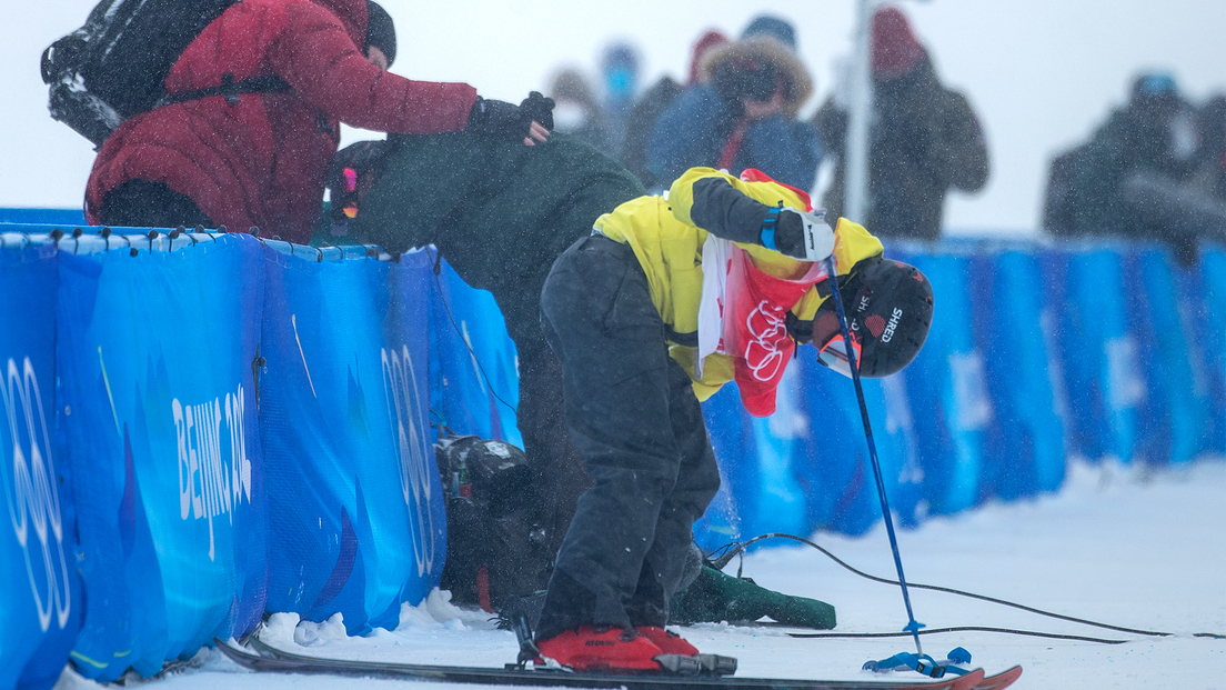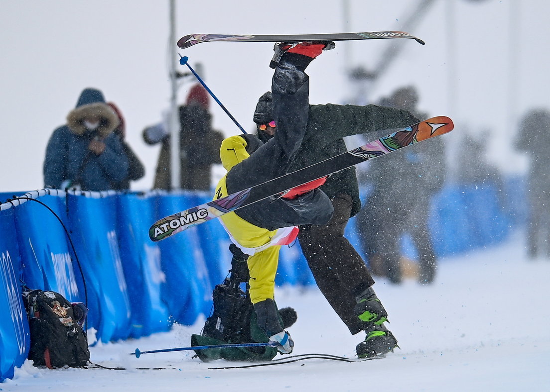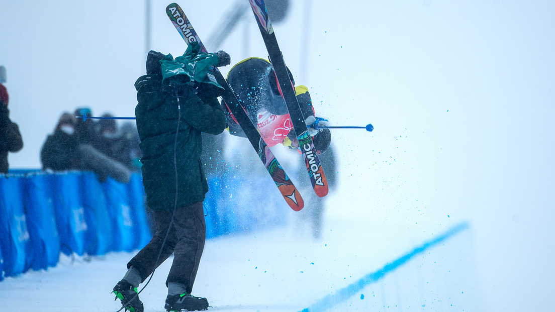 El atleta perdió el control cuando estaba a mitad de camino, provocando que su esquí golpeara al operador, quien estaba de pie cerca del borde para captar los mejores momentos de la competencia.