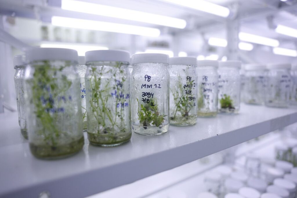 En primer lugar, explica Rodrigues, se tiene una planta de estevia 'in vitro', con tres puntos de hoja-yema, que son irradiados. Posteriormente, se traslada al laboratorio, donde se cortan los puntos y se ponen cada uno en un frasco, obteniéndose así las generaciones 1M1V1, 2M1V1, 3M1V1. "Esa es la primera generación de mutantes irradiados. Habrá mucha variabilidad", explica.