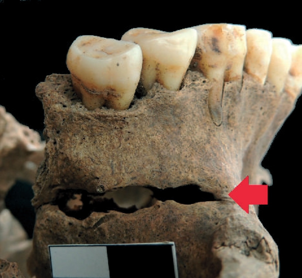 La persona enterrada estaba colocada de forma inusual: el tórax del fallecido fue colocado en posición supina y su cabeza fue separada del cuello y colocada a una distancia de 30 cm, mientras que el tejido blando aún estaba presente.